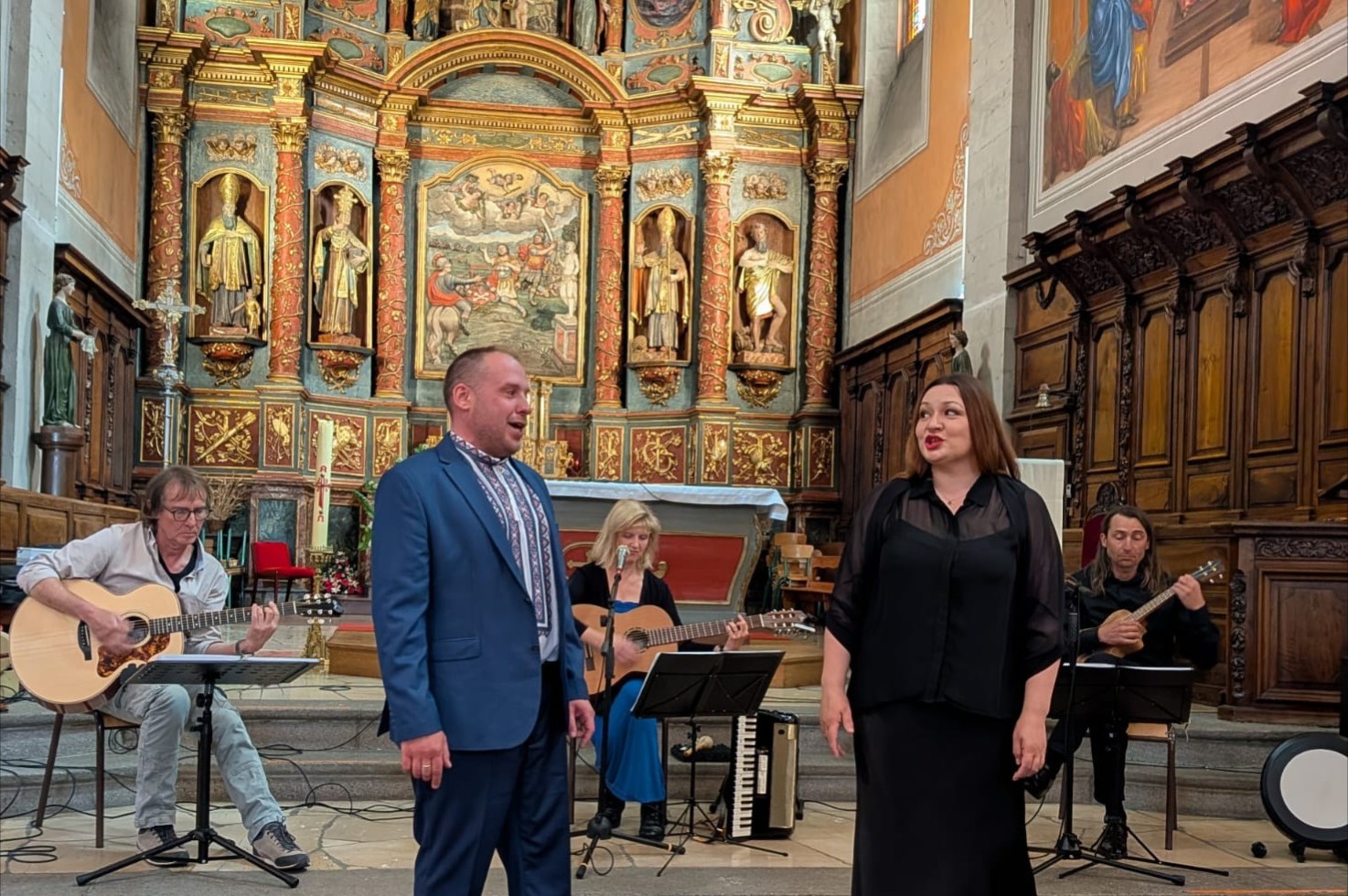 Vu la prolongation de la guerre et l’enthousiasme pour cette prestation ayant réuni plus de 120 participants au village du Châble (Beaumont/F), plusieurs concerts caritatifs pour l’Ukraine se sont poursuivis, en collaboration avec des associations, des acteurs locaux ou au gré de rencontres, comme ce fut le cas avec un couple de chanteurs lyriques réfugiés Ukrainiens rencontrés par le biais d’une association, qui sont devenus des amis. »