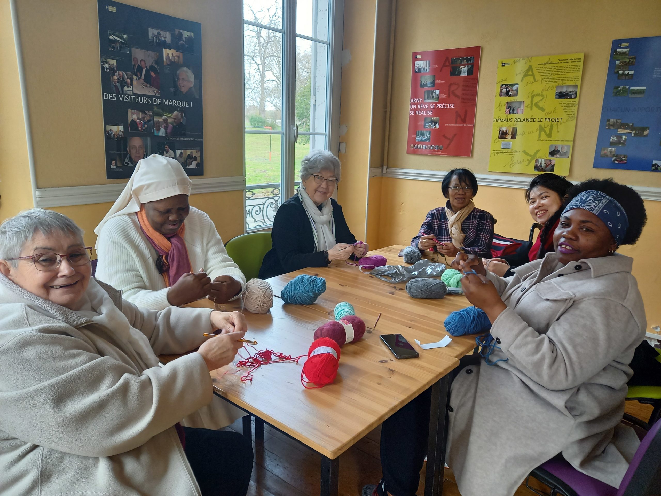 L’après-midi s’est modulé en plusieurs possibilités : ramasser les branchages éparpillés dans le parc par les récents coups de vent, s’enrichir à l’atelier écriture à partir de textes de la Bible, apprendre le crochet dans une ambiance très conviviale avec 5 nationalités représentées, continuer à entretenir le potager.