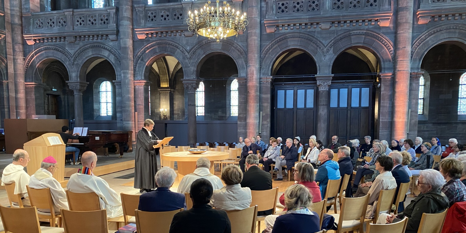 En clôture, une célébration œcuménique a rassemblé une centaine de personnes au « Temple Neuf », église luthérienne de Strasbourg-centre. En ce temps où la guerre a repris aux portes de l’Europe, pasteurs et croyants des églises luthériennes, anglicanes, catholiques, évangéliques et orthodoxes de la ville se sont ainsi retrouvés pour un temps de prière, centré sur les paroles de la Déclaration Schuman. Ils ont rappelé qu’un avenir de paix en Europe et dans le monde dépendra de celles et ceux qui se savent héritiers d’une histoire forte et qui s’engagent à vivre la fraternité, meilleure voie pour contribuer à réaliser la devise de l’Europe « Unie dans la diversité ».