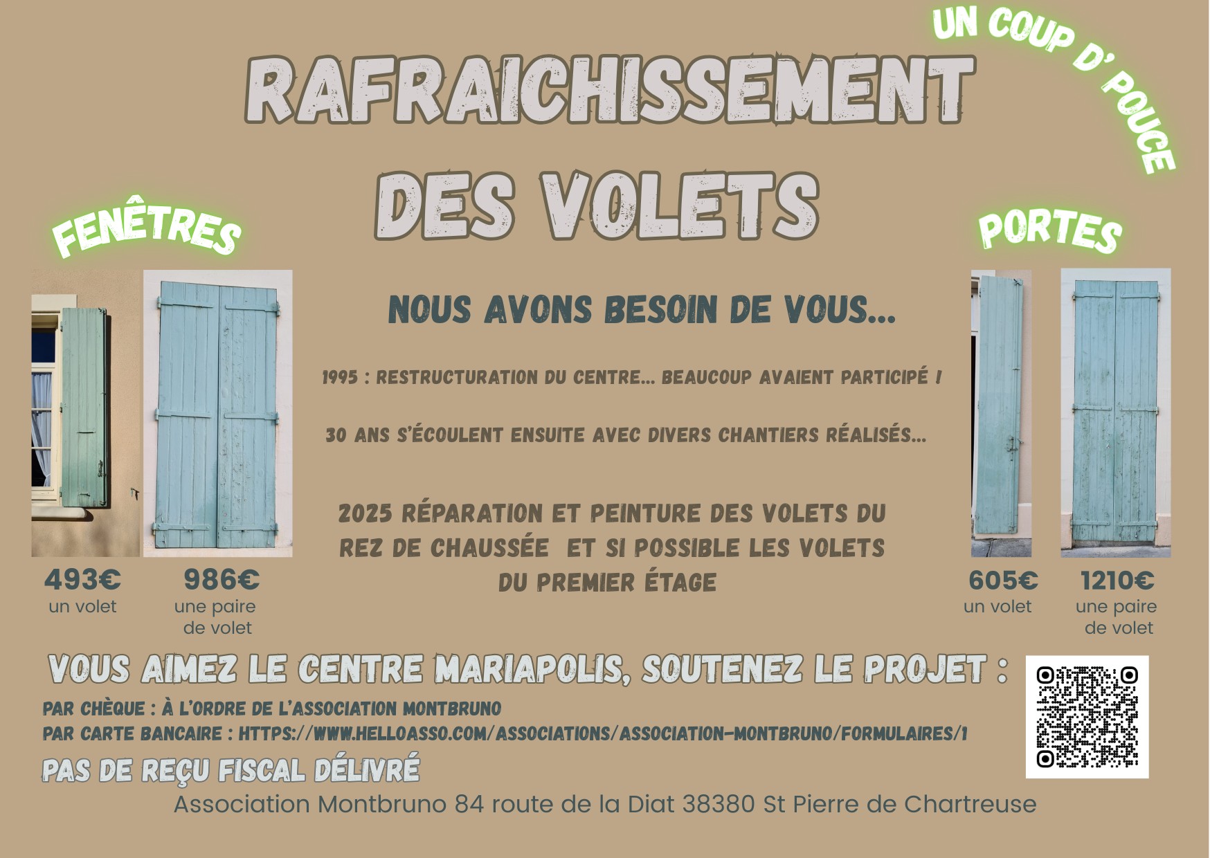 Des travaux sont nécessaires pour réparer, rafraîchir les volets du centre de Mariapolis de Saint-Pierre de Chartreuse.